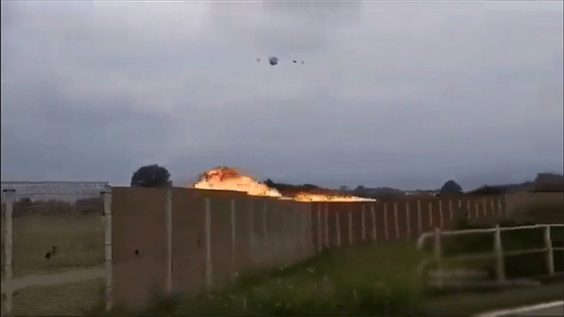 En el video, también se observa el momento justo en el que el piloto es expulsado con un paracaídas poco antes del impacto; sin embargo también sufrió quemaduras.
